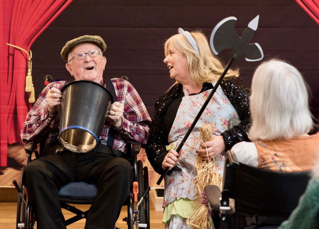 Residents chose their own songs and performances, supported by staff and local musicians. Care staff and volunteers helped prepare costumes and props, decorate the venue, run rehearsals and organise a raffle and auction.