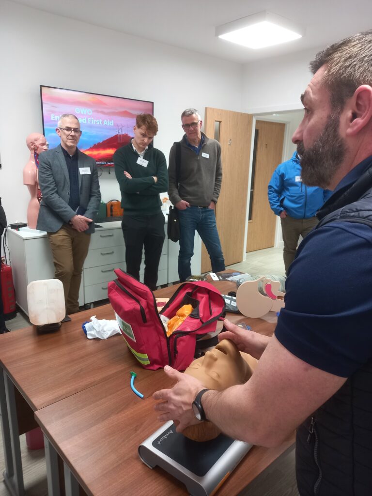Members witnessed this commitment to safety first-hand through a fascinating first-aid demonstration – a particular highlight for Chamber Chief Executive Colin Marr – as well as a dramatic wind turbine rescue simulation that brought the realities of offshore and onshore renewables work to life. These practical demonstrations underlined Aurora’s ethos that training must be done right, every time.